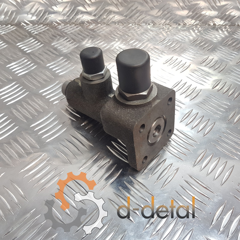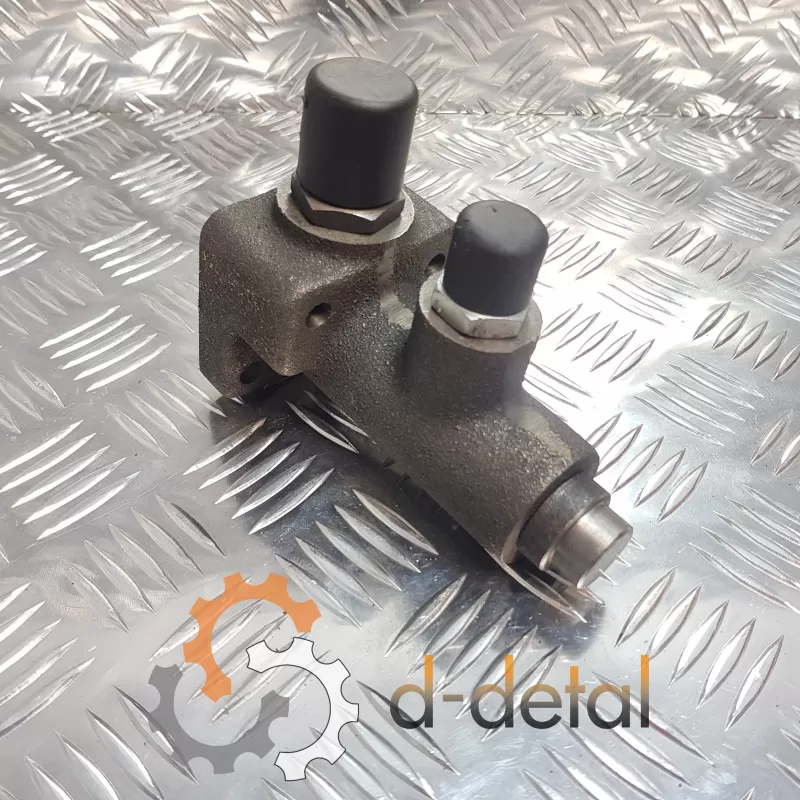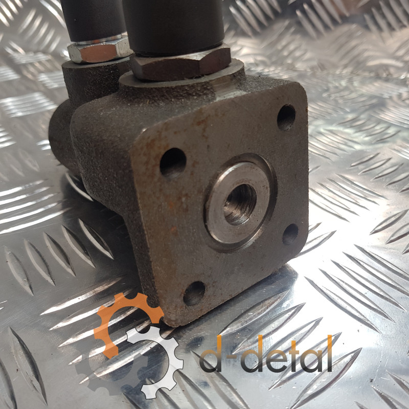 Чугунный корпус выдерживает постоянное давление в системе, не коробится при нагревании и не трескается от гидроударов. Внутри установлен золотник с пружиной, который автоматически держит нужный баланс потока (примерно 10-12 л/мин на гидроусилитель, остальное - на навеску). В работе это означает стабильный подъем навесного оборудования при резких поворотах и при этом без потери управляемости.